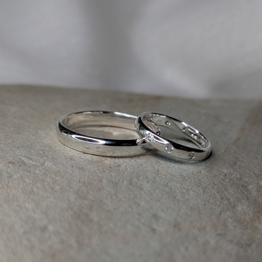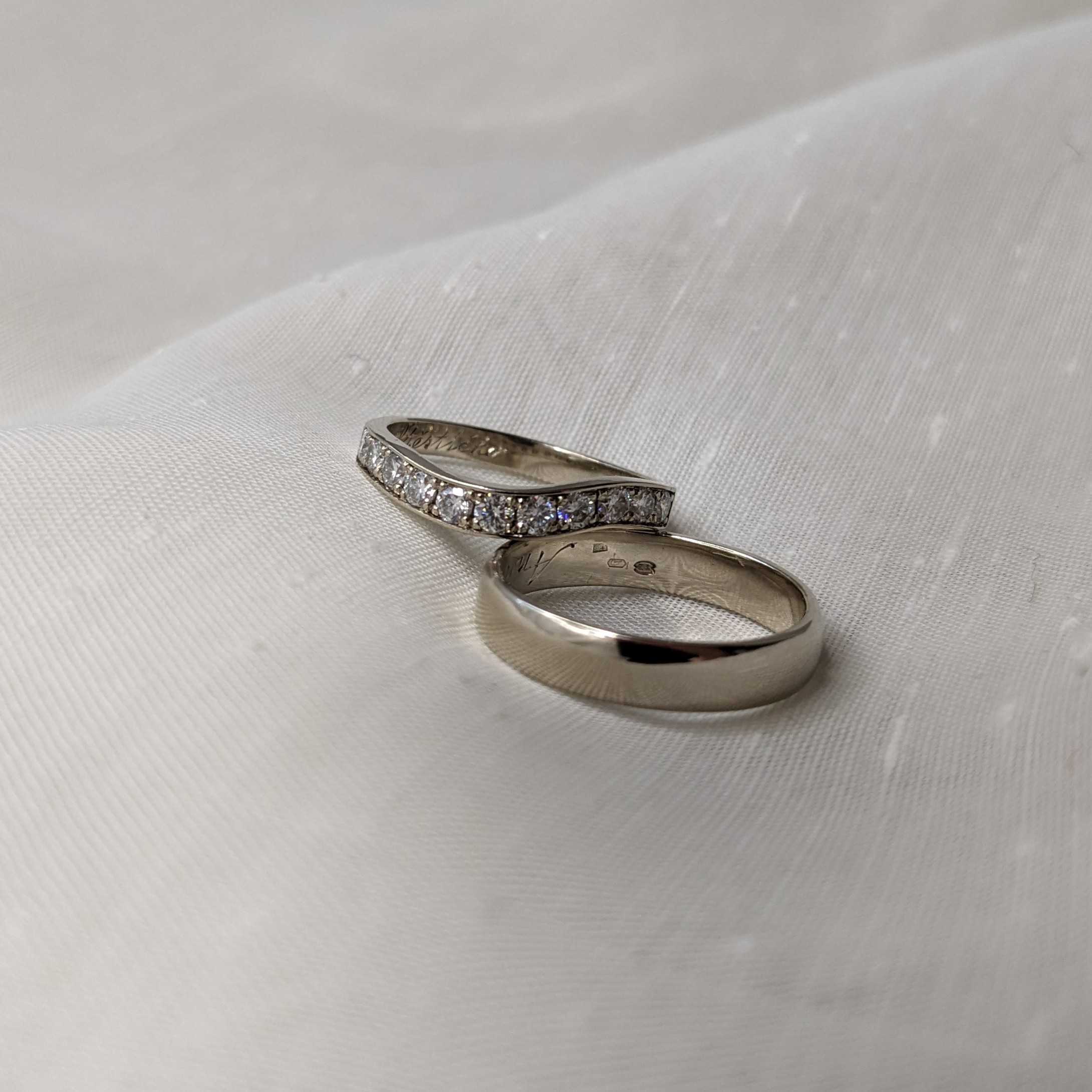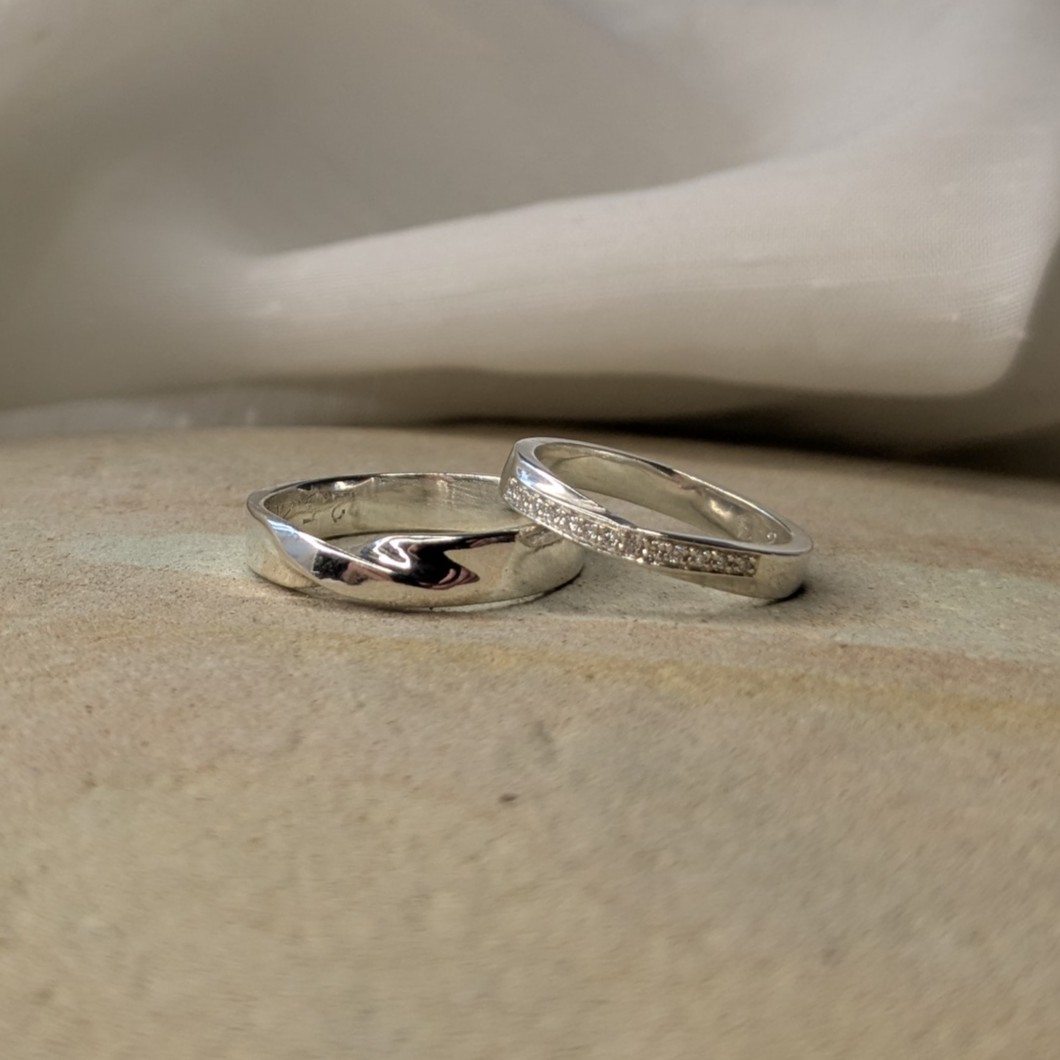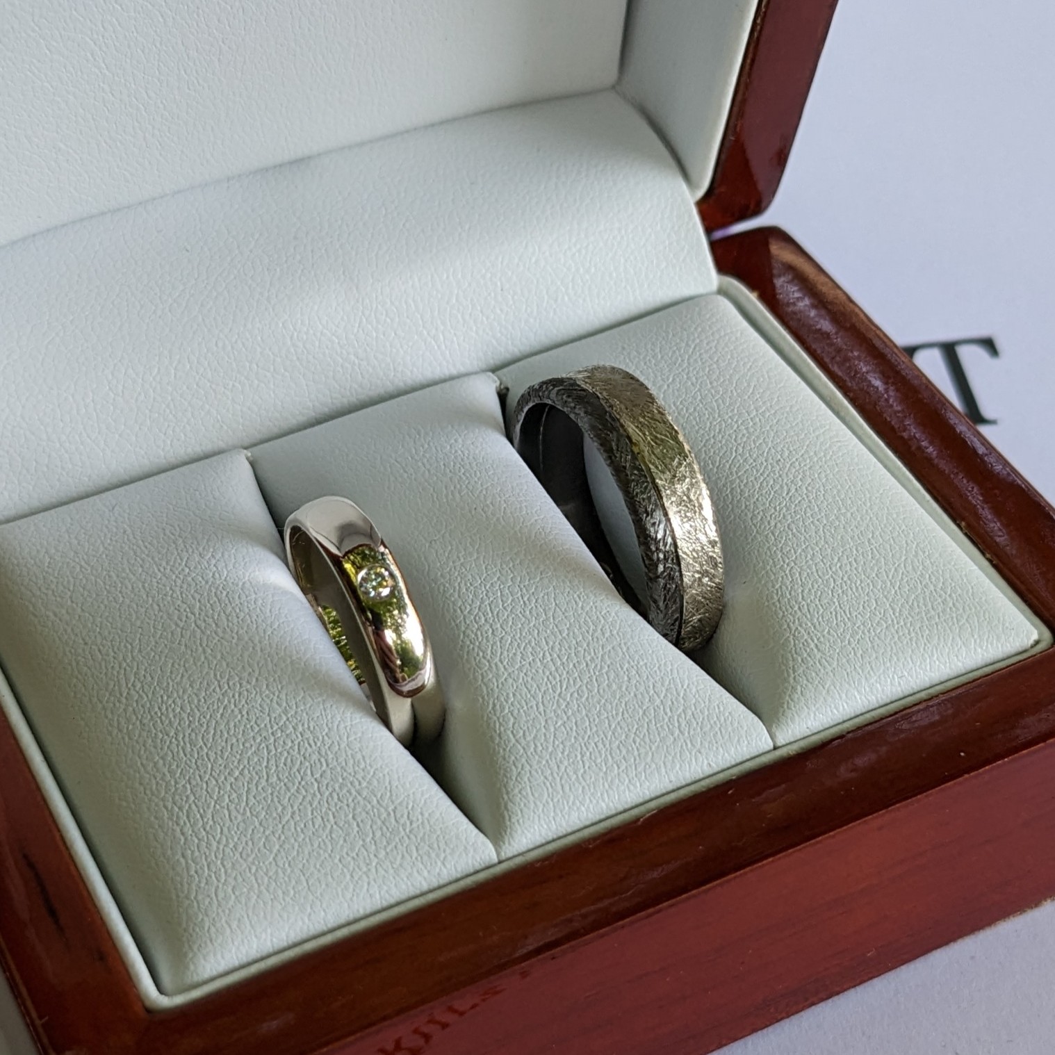 - Prsteny z bílého zlata, s malými diamantíky (zasazeno profesinálem)