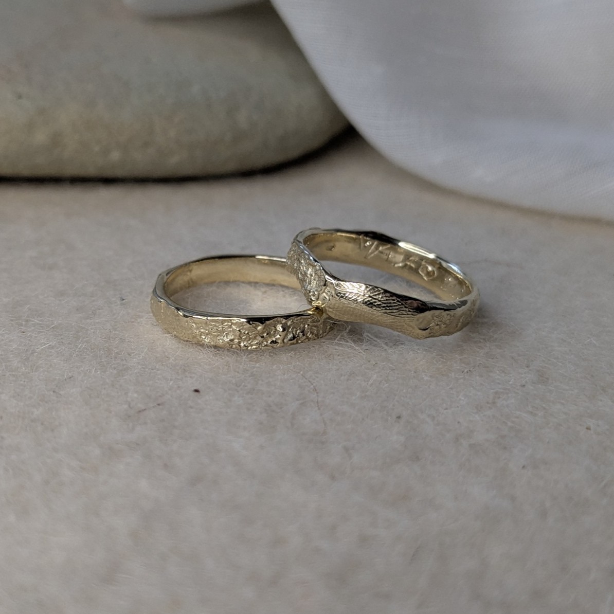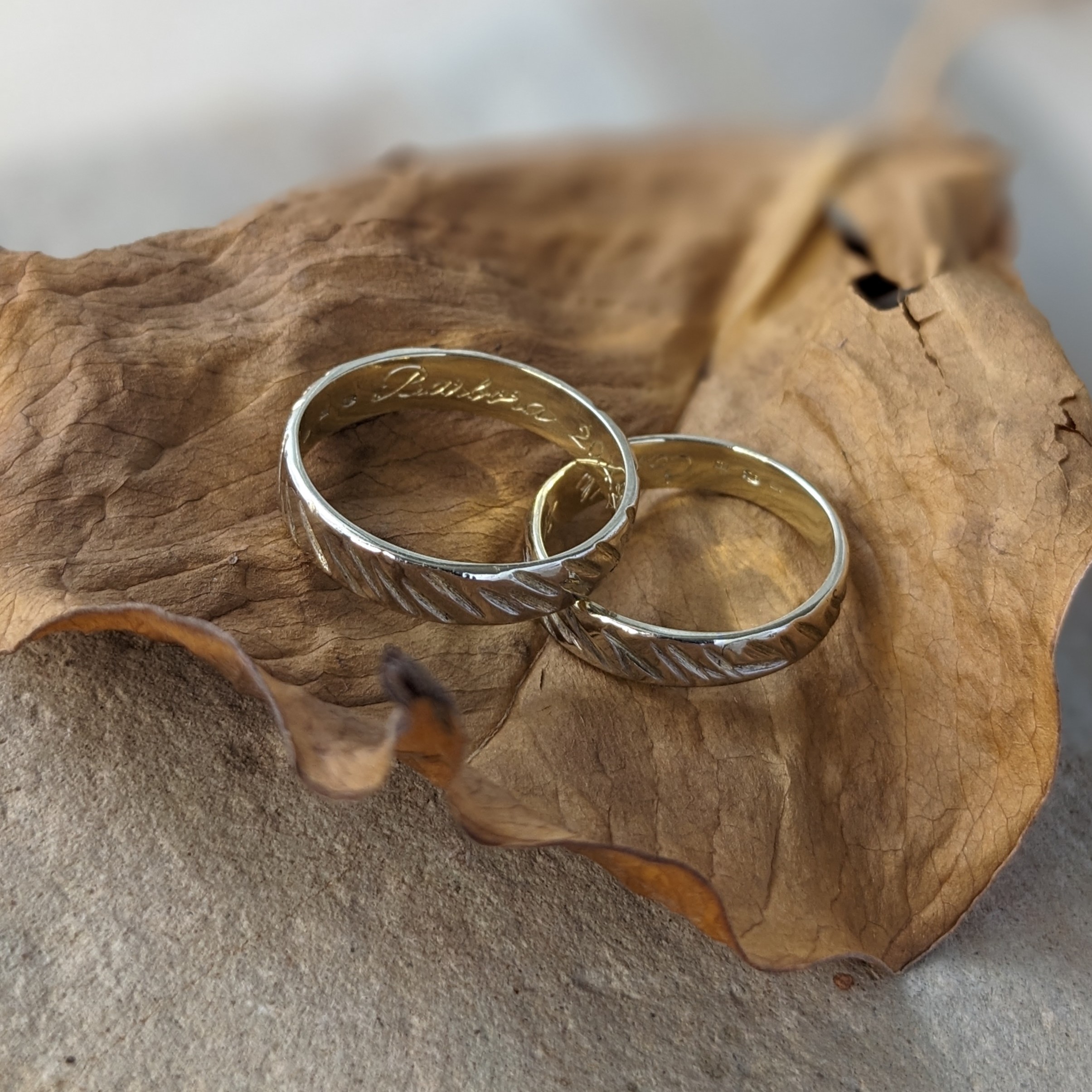 veškeré ručně dělané rytiny dovnitř nebo vně prstenů