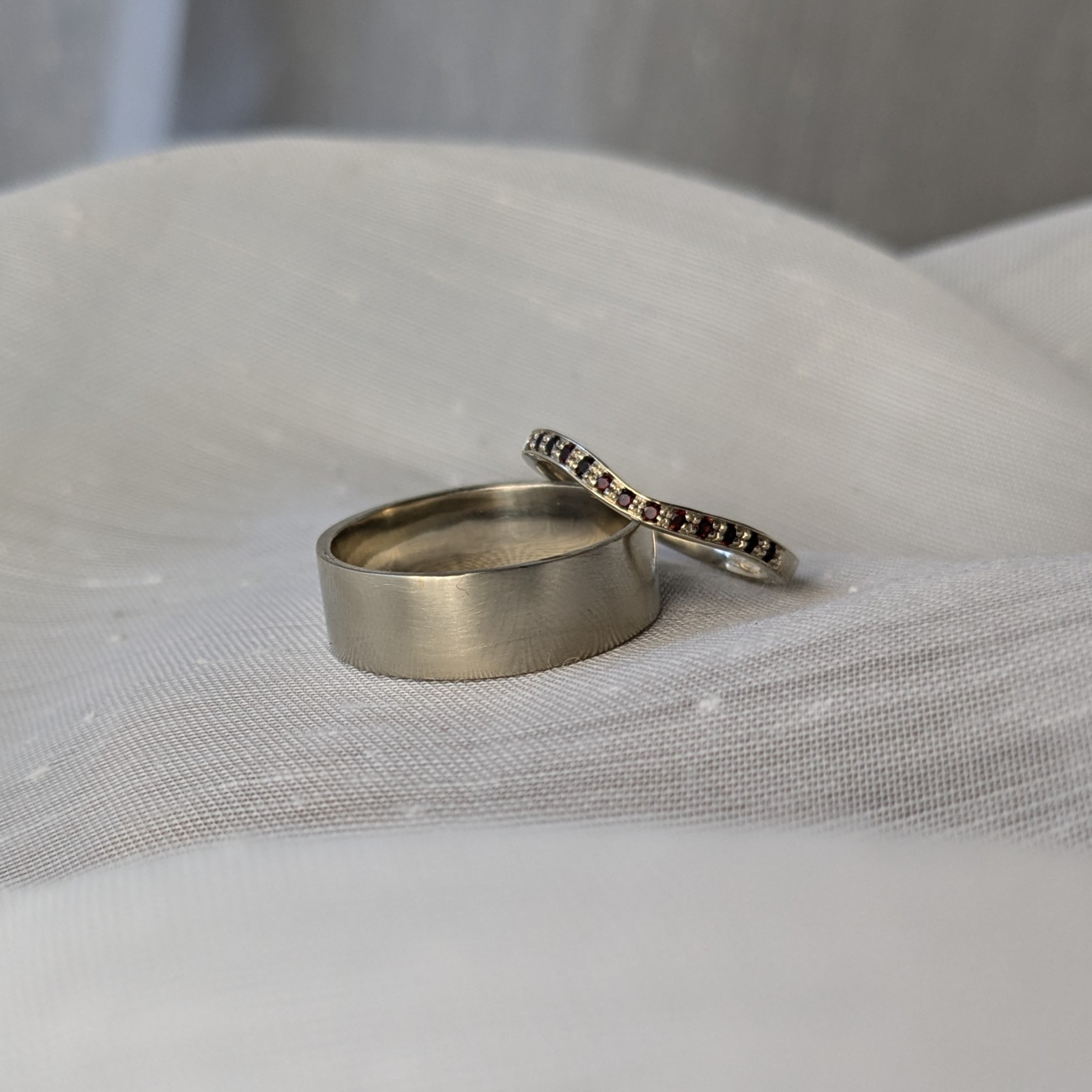 Před samotným kurzem proběhne domlouvání, kde probereme vaši představu a zároveň naše možnosti, zjistíme velikosti prstenů a domluvíme se na materiálu, drahých kamenech či rytině. Domlouvání může proběhnout formou schůzky klidně on-line, nebo si jen vyměníme pár e-mailů - každopádně na kurz už budete mít jasnou představu o tom, jak budou vaše snubní prsteny vypadat (a já budu mít připraven dostatek materiálu na výrobu).