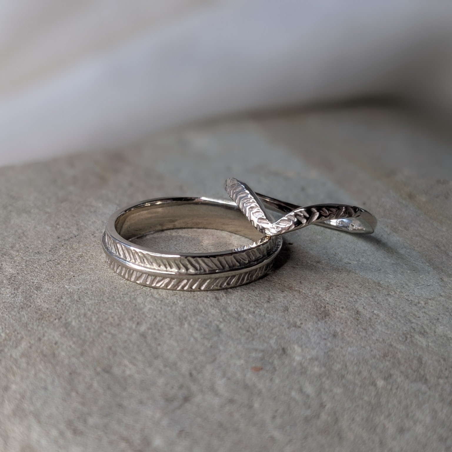 - Dvouvrstvé prsteny v kombinaci bílého a žlutého zlata, kdy vrypy pak zviditelní spodní vrstvu jiné barvy